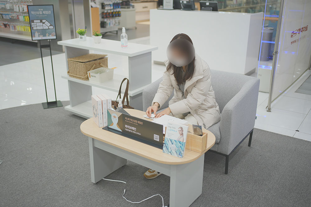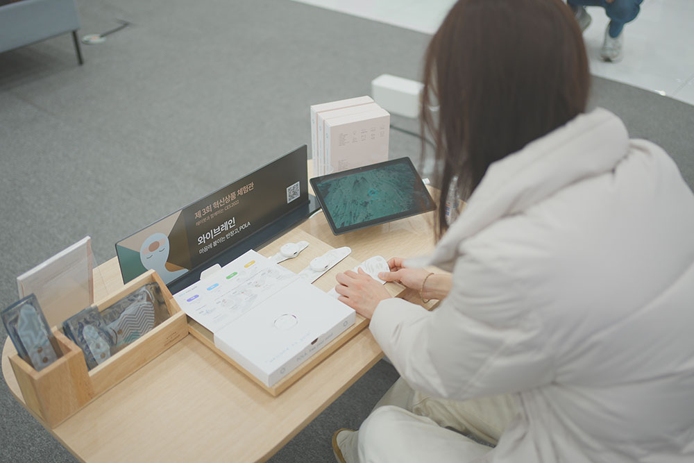 제3회 혁신상품 체험관의 와이브레인 코너는 이렇게 아기자기하게 꾸며졌습니다. 폴라만의 감성을 담은 패키지와 코너 전반적인 분위기가 잘어울리는 것 같죠?